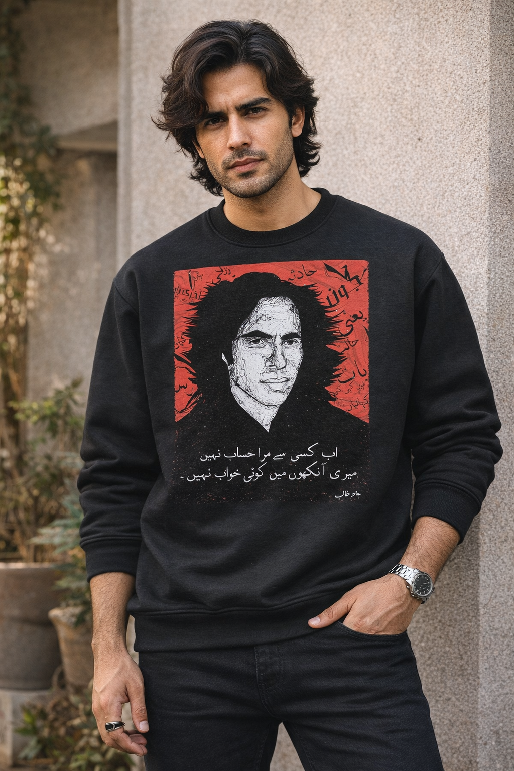 Urdu Poetry Back Print Black Sweatshirt – Premium Winter Wear